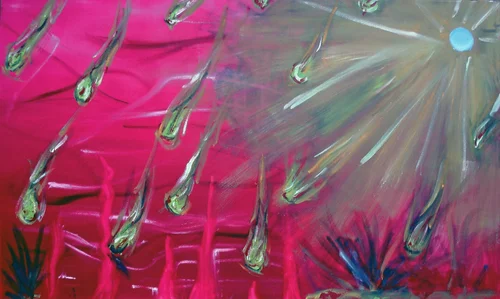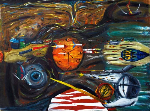 Rainbow Spiral of time bikeing over the face of the Universe with a unicycle 48 by 36in